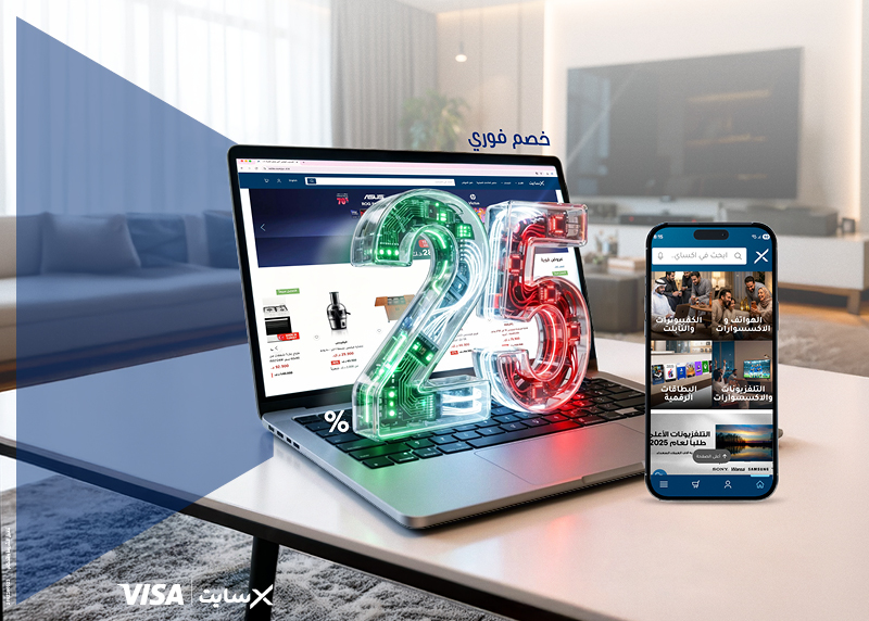 استخدم بطاقة الوطني المؤهلة عند التسوق عبر موقع أو تطبيق اكسايت خلال العيد الوطني واحصل على خصم فوري 25%.