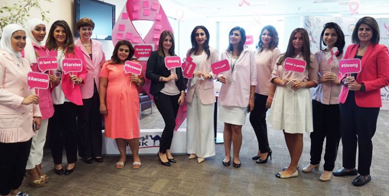 وبهذه المناسبة، قالت مساعد مدير عام إدارة العلاقات العامة في بنك الكويت الوطني منال فيصل المطر إن هذا الأسبوع الصحي يتزامن مع الشهر العالمي للتضامن مع المصابين بسرطان الثدي، وقد قام موظفو بنك الكويت الوطني بالمشاركة بهذه المناسبة عن طريق ارتداء اللون الوردي تفاعلا مع ما يحمله من رمزية تجاه دعم مرضى سرطان الثدي.