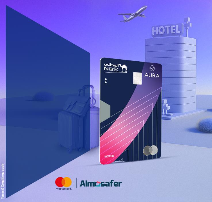 Apply for NBK-Aura Credit Card and get 50% discount on hotel and flight bookings through Almosafer website or app.